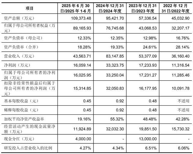 三瑞智能2025年上半年营收为4.36亿元,净利为1.61亿,扣非后净利为1.53亿元。